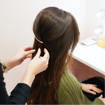 前髪ウィッグとハーフウィッグは装着ピンでとめるタイプです。着けた後に触っても簡単にはズレにくくピッタリ安定します。